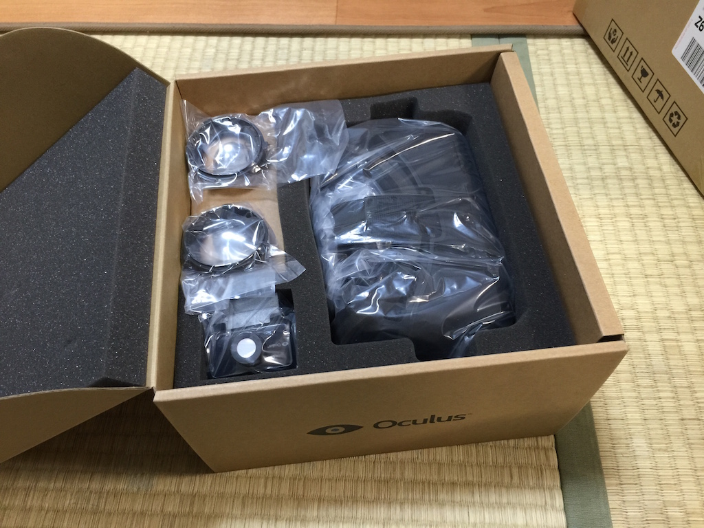VRの世界に疎いので、Oculus Riftの情報なんかまったく集めておらず、完全に情弱状態でした。 まず、Oculus Riftの一般販売はまだ行われていません。(今年?出るらしい) そしてこのDK2(Developers Kit2)は、2013年に出た初代DKの改良版(2014年7月リリース)。 初代から解像度アップ(フルHD)、コンパクト化、低遅延化、さらにヘッドトラッキングが導入された開発キット第2弾。 初代DKは頭の回転は検知でき、視線の向きを頭の動きでコントロール出来ましたが、頭の位置は固定でした。 DK2では外部のヘッドトラッキング用カメラを使って3次元の動きを検知できます。つまり対象物に寄ったり離れたり、上から見下ろす、下から見上げるが可能になったのです。