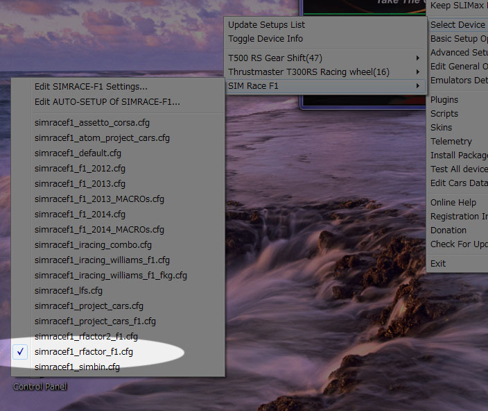公式サイトで配布していたマネージャソフトを起動すると、動作確認は出来ましたが、ゲームでは何も表示されない。 やっぱり、ゲーム用のプラグインが要るはずなんだよ・・・と思っていろいろググってみると、別のマネージャソフトが出てきました。 名前からして、自分が購入したSIMR-F1より旧型の機種名のアプリだったので、適合しないのかと思いましたが、ちゃんと最新機種もサポートされていました。 そしてこのマネージャソフトには各ゲーム用のプラグインも同梱。