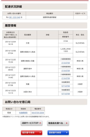 12月の初めに注文してから20日ほど、気をもみながら到着を待っていましたが、無事に届いてホッとしました。 オンラインショップはフツーの英語だったので、てっきりイギリスかアメリカかと思ってましたが、頼んでから追跡サービスで調べると、なんとスロベニアから。