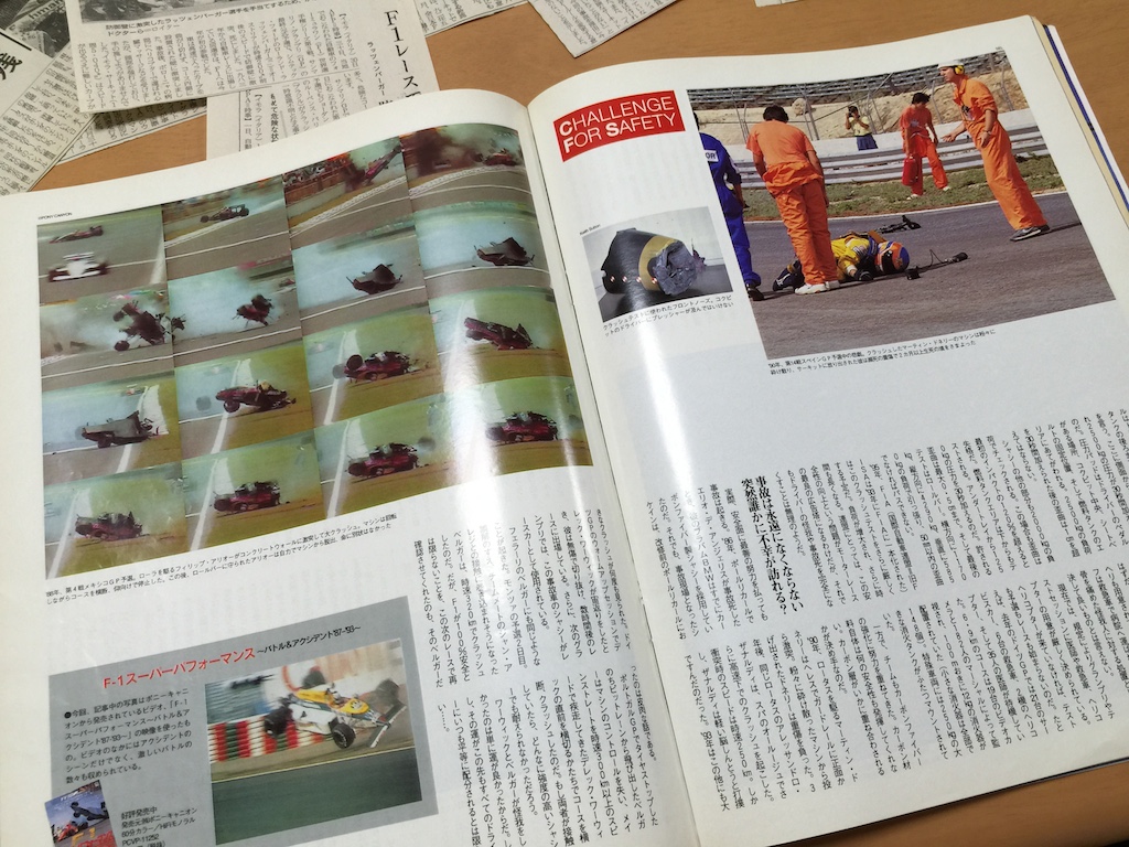 おそらくこの雑誌の特集はそういう時代背景からの不安を表したものだったのではないだろうか。 1982年ベルギーGPのジル・ビルヌーブ、カナダGPのリカルド・パレッティ以降、グランプリウィーク中のドライバーの死亡事故は起こっておらず、F1マシンは安全になった!と皆が思っていた頃で、ハイテクを封じられたF1マシンが安全性をも損なったわけではない、と自ら言い聞かせるかのように。