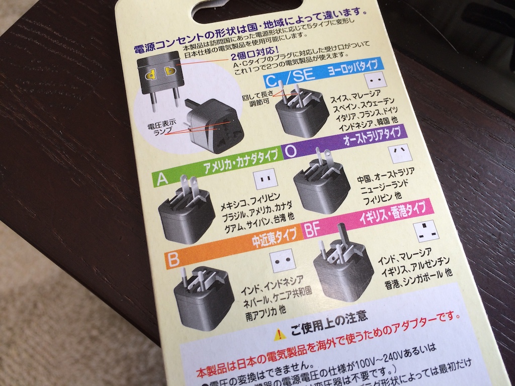 まあ大抵の海外ホテルでは、変換プラグの貸出しもやってますが、万が一ということもあるしね。