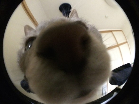 これは魚眼レンズですが、なかなかオモシロイ写真が撮れます。動画なんかも結構いいかも。(ネコじゃなくカピバラが写ってますが) でも、レンズの上にレンズをつけるので画質は更に落ちます。(この画像はiPhoneの標準カメラアプリで撮ったのでフツーに見えますが) MacBookにつけてCamCamとかで見てみると、ボヤボヤでほとんど何も分かりません。 これはむしろ旅行に持って行って使ったほうが良さそうです。
