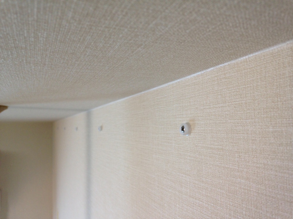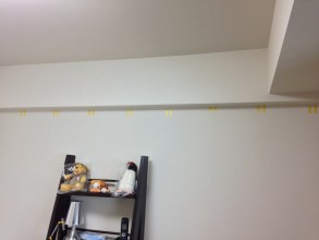 マンション契約時にオプションでピクチャーレールがあったのですが、1箇所5万円程度とバカ高いので、引っ越してから自分でやろうと思っていました。 そこでまず考えたのは、どうしたらレールを壁に固定できるか。 通常マンションの壁は石膏ボードがはめられており、そこに直接ネジ釘を挿しても固定されない。 石膏ボードの裏側にある、ボードを固定している木や鉄の下地に打ち込まないと重量物は支えられないのです。