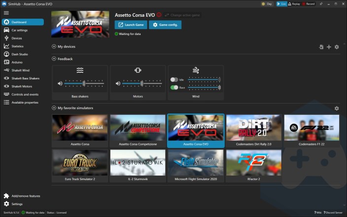 しかも一昨日リリースされたばかりのAssetto Corsa EVOにも速攻対応済。(リリース当日にアップデートが来た)