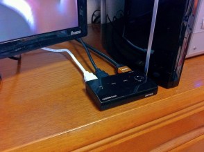 しかし若干困ったことが。 まず、DELLモニターがHDMIに対応していなかったため、現在のチューナー/PS3の接続構成がD端子のセレクタ経由になっていること。 そもそもDVIやRGBはおろか、PCモニターらしくなくアナログビデオ入力とS端子にすら対応していたDELLのおかげで可能になった接続なのです。 PCモニターがHDMIに対応しちゃったら、D端子なんて要るはずもなく、もちろんイイヤマにも付いてません。 で、やむなくHDMIケーブルと、HDMIセレクタも買う必要があります。