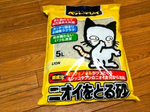 で、もうちょっと他を検討しようと、猫砂比較レポート(130砂)というサイトで比較検討した結果、 固まり力や消臭効果、飛び散りなどが効果的で、尚且つ安くて近所で簡単に手に入るということで、ライオンの「ニオイをとる砂」にしてみました。