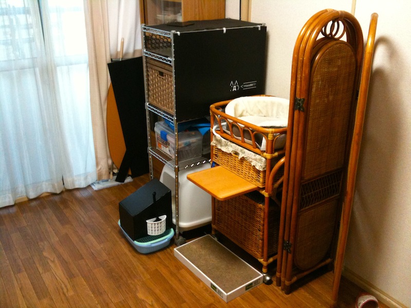 それにしても、ネコトイレ前に対策したネコ砂飛び散り防止策が、かなり効果があるようで、 今まではキッチンはおろかリビングまで連れて行かれていたネコ砂が、ネコトイレの半径50cm以内より外には出なくなりました!