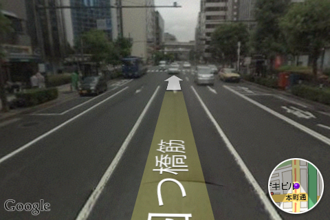 マップ上にピンを立てると、ストリートビュー対応の地域の場合、ピンの説明の左側にヒト型アイコンが出ます。 それをタップするとストリートビュー画面に。 指でドラッグしてビューを回転、ダブルタップで拡大。道路の矢印をタップすると移動出来ます。 PCのストリートビューより操作性がイイ!
