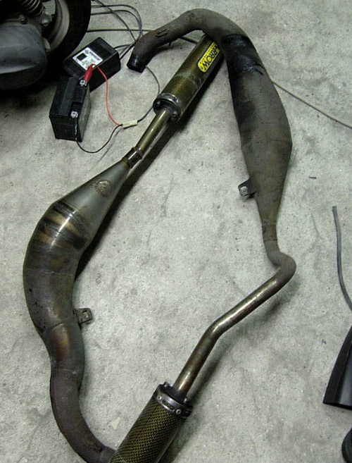 う〜ん・・・これは思ったよりヒドイかも・・・インレット側のところの錆がスゴイです。 チャンバーも左右出しの新しいヤツを買おうかなあ・・・