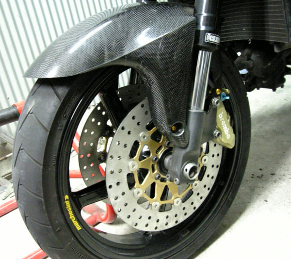 しょうがないので、カーボンFフェンダーのほうを取り付け。(ウェットではなくドライカーボンでした) aprilia RSV1000Rに付いてる純正かと思っていましたが、CEDEAというメーカーでした。 意外にもチェコ製です・・・Sebimotoと同じ(笑 こちらは難なく取り付けできました。