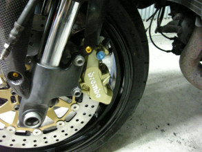 ホイールを外すのにブレーキキャリパーのボルトを外す必要があったので、ついでに旧キャリパー自体を外してしまって、新品の新型bremboを取り付けます。