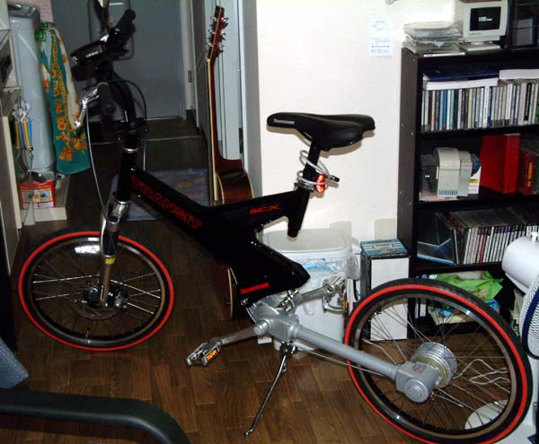 | 写真が下手クソな上に部屋が汚くてすんまそん。 予定通り、本日午前中に例のチャリが届きました・・・って、え? 買ったんだっけ?