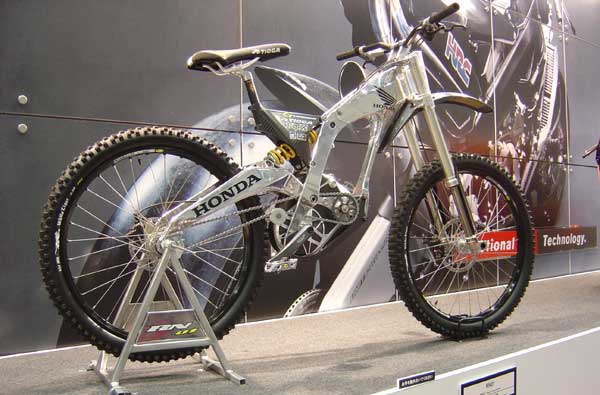 オレが今欲しいMTBは、下の写真のHONDA製のヤツです。 オレの条件を満たす上に、あまつさえ倒立フォークとは!! アルミバフがけフレームとは!! スイングアームがガルアームとは!! シートレールがカーボンとはとは!!!! ・・・ちなみに東京モーターサイクルショウ出品作で非売品なのですが、 同一仕様で市販されたとしたら、100万円は下らないでしょうな・・・ |  大観山さん、写真の無断使用をお許しください