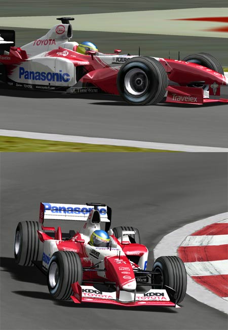 さてそれはさておき、GP4のカーシェイプファイルが新しくなりました。 もちろん、いつもドライブしているTOYOTAのマシンです。 見てください、このリアルさ。 実車写真かと見まごうほどの出来。 それもそのはず、GP4のカスタムカーシェイプで名を馳せる(笑 中国人、VIPER氏の作です。 FerrariF2003GAなどは彼の決定版以外にまともなものが存在しないほど。 今までは「自分が作ったモノより全体のバランスとテクスチャが良い」という理由で、 6月くらいにリリースされた2003メガパックに入っていたモノを使ってましたが、 インダクションポッドが開いてないとか、テクスチャのブラッシングパターンが今一歩とか、 多少の不満点がありましたが、今回のVIPER氏作はさすがです。 カッコ良すぎて多少ファイルもデカくなりましたが・・・ 惜しむらくは、イギリスGPからデビューした新型カウルではなく、 旧型のままってことくらいですかな・・・ まあ、単純なカッコ良さは旧型のほうが良いのですが。 |