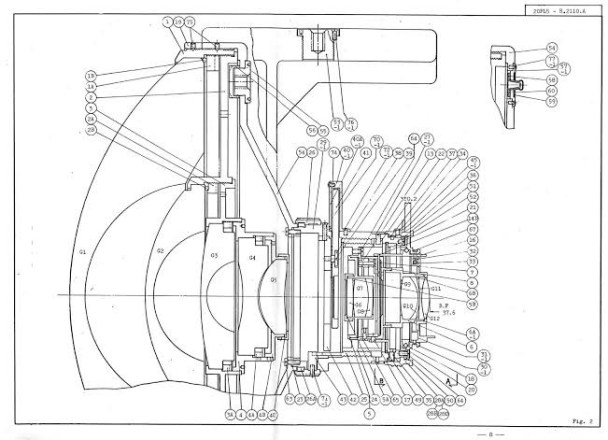 さてこのDIYで一番難儀したのが、キットで一番残念だった魚眼レンズです。 当初行なって失敗した、UVクラフトレジン流し込みですが、一応固まったと思って触ってるときに気づいたのですが、明らかに本物はこんな単純な凸レンズじゃないと。 凸レンズだとしても内側も湾曲している薄いタイプか、または凹レンズかも知れない。 調べたところ、NIKON魚眼レンズの断面図が出てきたのですが、これは衝撃。 というか、本物の光学カメラがわずか2枚のレンズで構成されているはずがないことにさっさと気づけよと。スマホのカメラだって4,5枚のレンズ使ってるのに。