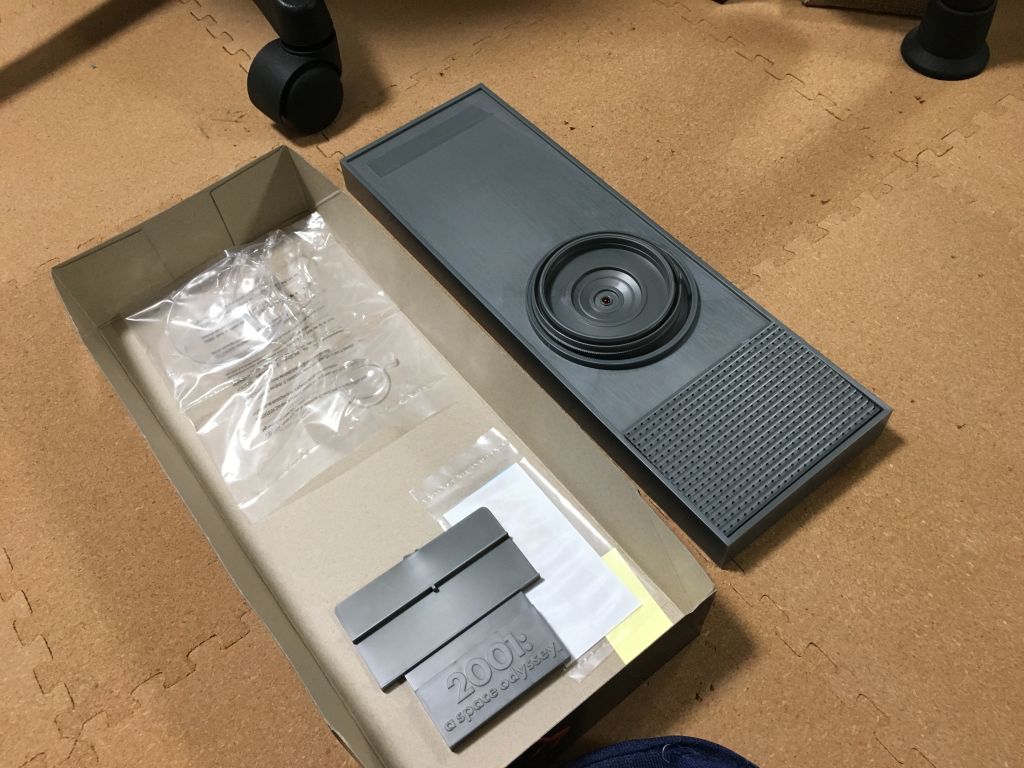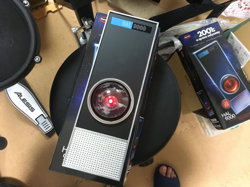 が、2018年のIMAXでのリバイバル上映(これはフィルムではなくデジタルリマスター版)に一緒に観に行った友人のバーマスターがやたらハマってしまい、 それ以降「2001年」グッズやらポスターやらを買い集め、さらには翌年(2019年)に発売されることになったHAL9000のプラモデルも予約していました。 海外製とはいえ、アマゾンで6000円台という割と高価格なプラモデルで、自分は当初まったく興味がなかったのですが、 春発売のはずが秋に延期されたりしているうちに、なんか興味がわいてきて、気づいたら自分も予約してしまっていました。