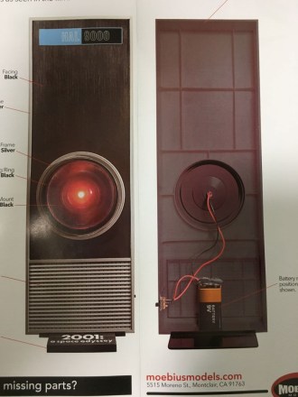 結局めでたく発売されたのは11月末で、12月初めにようやく届いたのですが、大方は予想していたもののやはり海外キット、6000円の価格には見合わない内容で少し残念。 赤色LEDでHALの「目」は光るものの、回路はLEDとON/OFFスイッチと単9電池(今時・・・)だけという単純なもので、 キットの唯一のメリットとしては、映画で使われたプロップモデルの寸法やディテールに忠実なことくらいか。