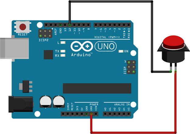 つなぎ方としては、任意のI/Oポートをプラス側、GNDをマイナス側としてボタンをつなぐだけです。