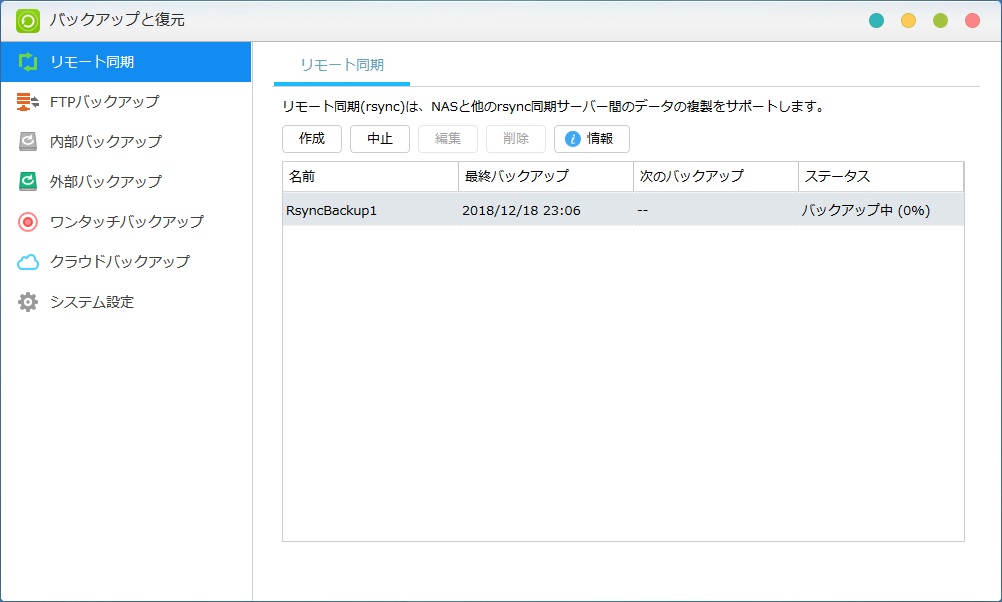 NAS設定画面からストレージをRAID1(ミラーリング)で構成しました。 これで長年の懸念だった、データの保全性がある程度確保される訳です。 NASの設定をいじったりアプリを入れてみたりしたいところですが、それどころではなくまずはLinkStationからデータをバックアップしないといけません。 簡易NASからLinkStationへデータを引っ越した時は、コマンドプロンプトからデータコピーのコマンドでやった訳ですが、ググったところNASにはNAS用のバックアップ機能があるとのこと。 「rsync」というのがそれで、それぞれのNASがrsyncに対応していればPC要らずで直接データコピーができるみたいですが、果たして8年前のLinkStationが対応しているかどうか。 ググった方法で試したところ、ASUSTORの方はちゃんと「rsyncを有効にする」という設定があったのですが、LinkStationはよく分からない。 とりあえずバックアップ先(ASUSTOR)でrsyncを有効にして、バックアップ元(LinkStation)でバックアップタスクを作成すれば、バックアップ先にASUSTORのフォルダが表示されるはずだが・・・案の定そう簡単にはいかない。